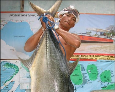 Experience the thrill of fishing in the open waters of Manta Point, Nusa Penida, one of Bali’s most scenic and exciting fishing locations!
